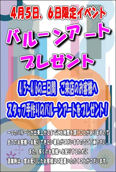 ご来店のお客様へバルーンアートサービス!